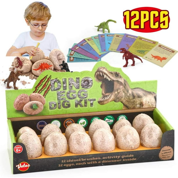 Vatos Dinosaur Eggs Dig Kit 12 Pack Discover 12 Different Dinos Easter Eggs Archaeology And Paleontology Toy Dino Egg Excavation Kit Stem Toys For 6 7 8 9 Year Old Boys Girls Kids Gift Walmart Com